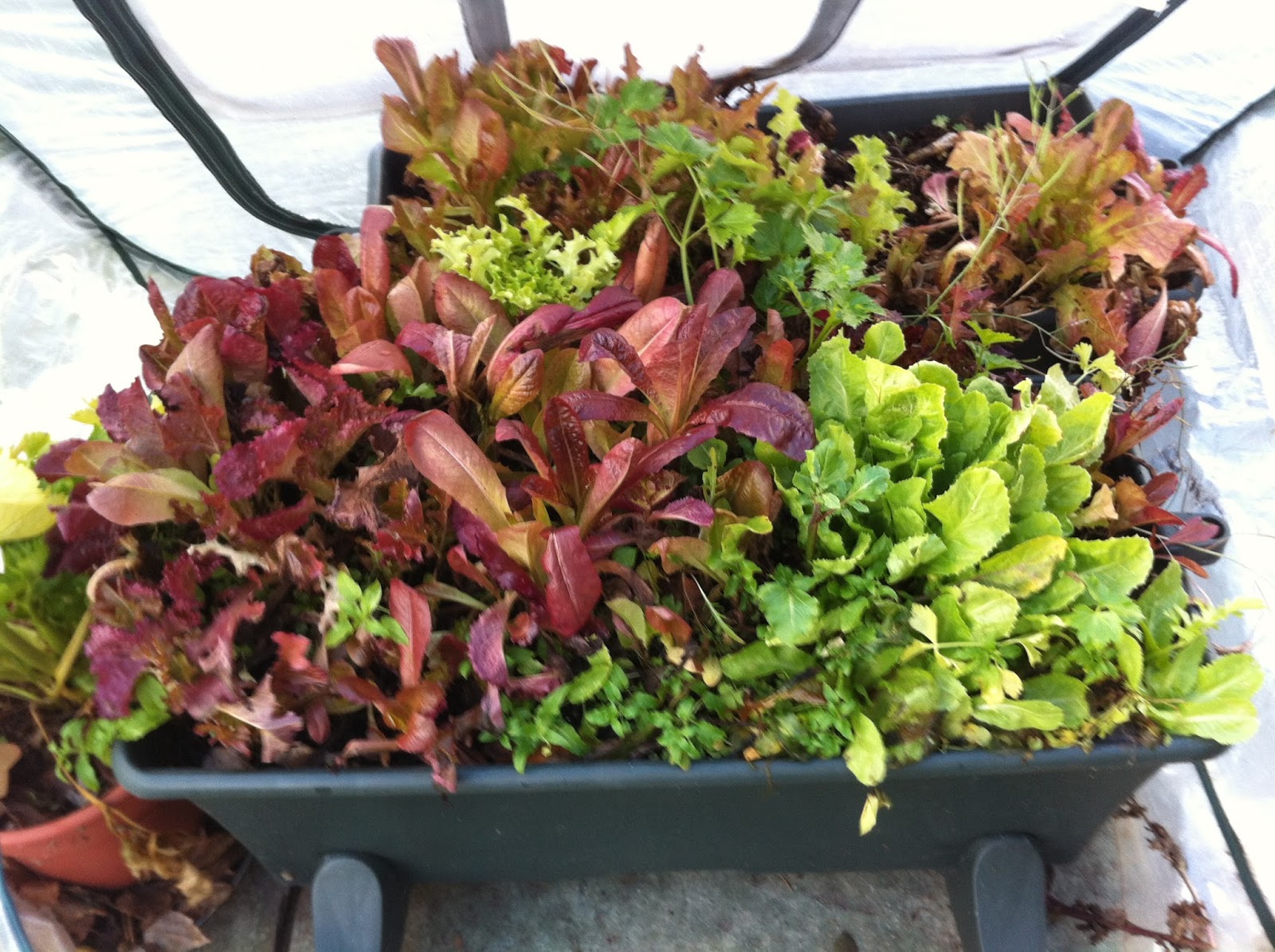 This fall, we will have mustard greens, lettuce, chard, blood veined sorrel, garden sorrel, French dandelion, spinach, lettuce, purslane, corn salad, celery, chives, parsley, arugula, and broccoli for salads. I’ll also plant some kale next month as it will last into the winter.